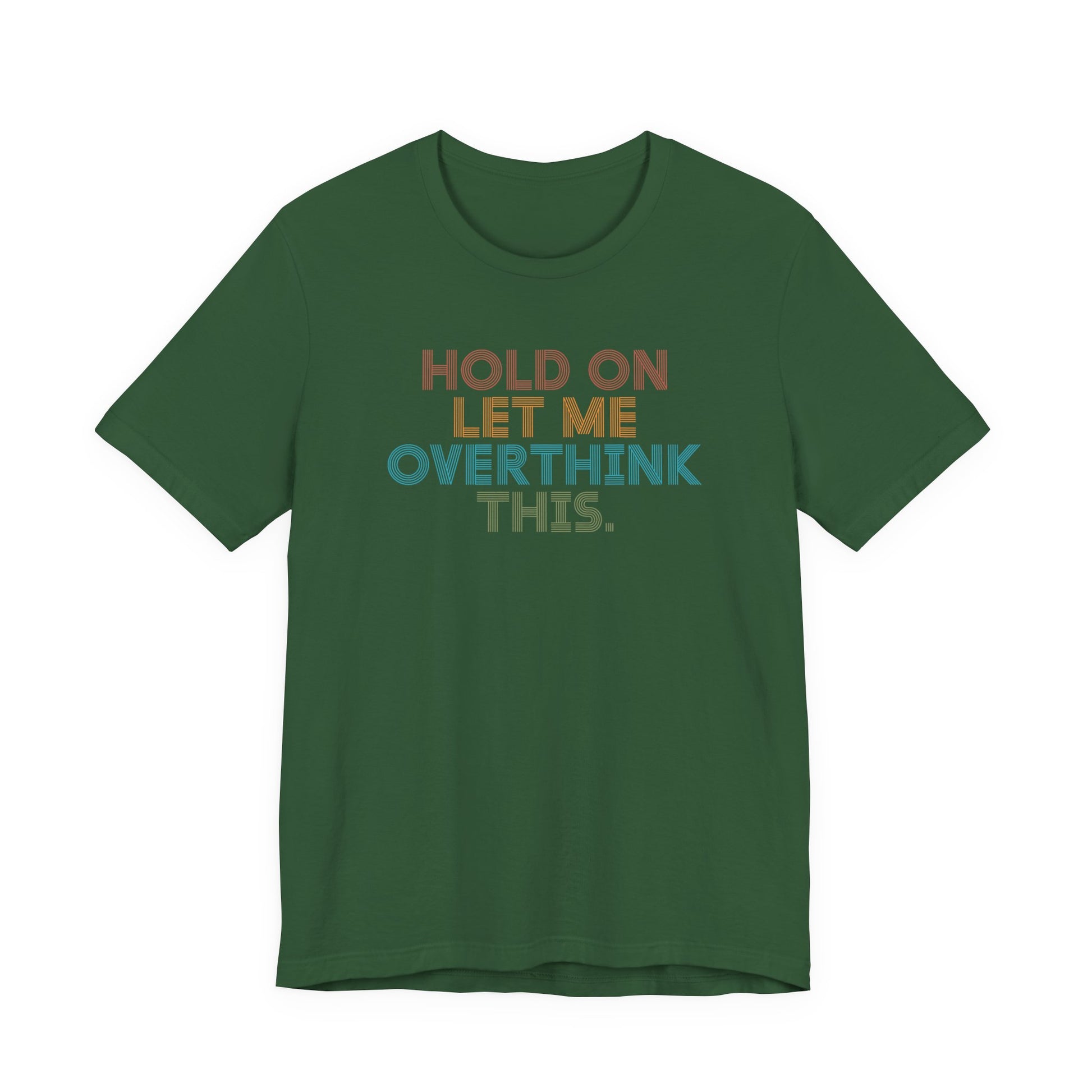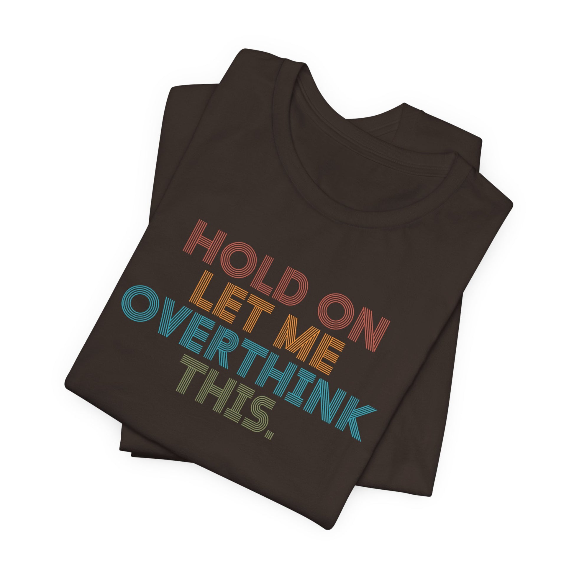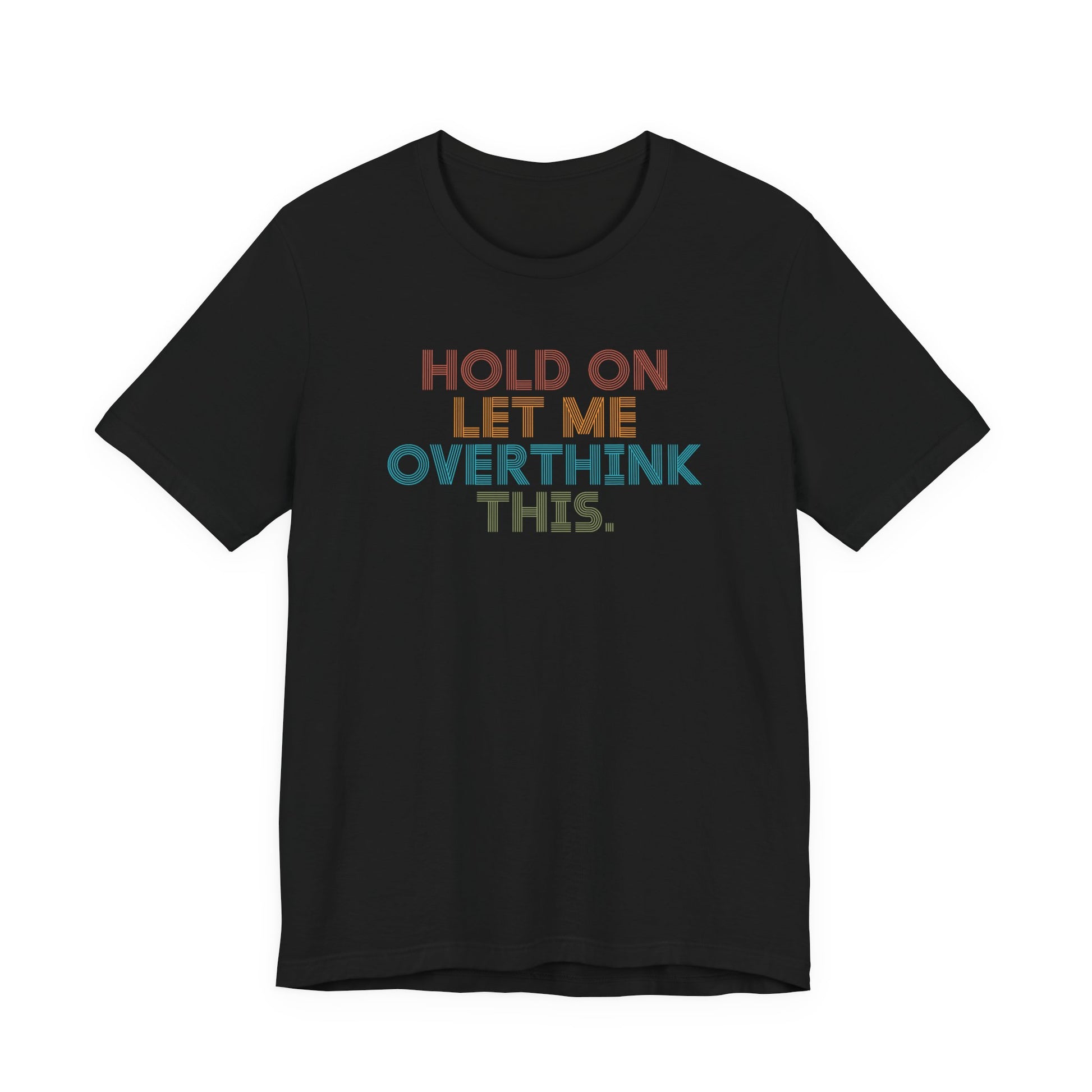 If your thought process takes the scenic route, this unisex jersey tee is your perfect sidekick. The design showcases “HOLD ON LET ME OVERTHINK THIS.” in a retro-inspired, multi-hue type that looks fresh on every colorway. You’ll enjoy the silky-smooth feel and featherlight breathability, ideal for everyday wear, from brunch to bookstore strolls. The fit is relaxed without slouching, flattering on every body and simple to style with denim, pleats, or your favorite joggers.