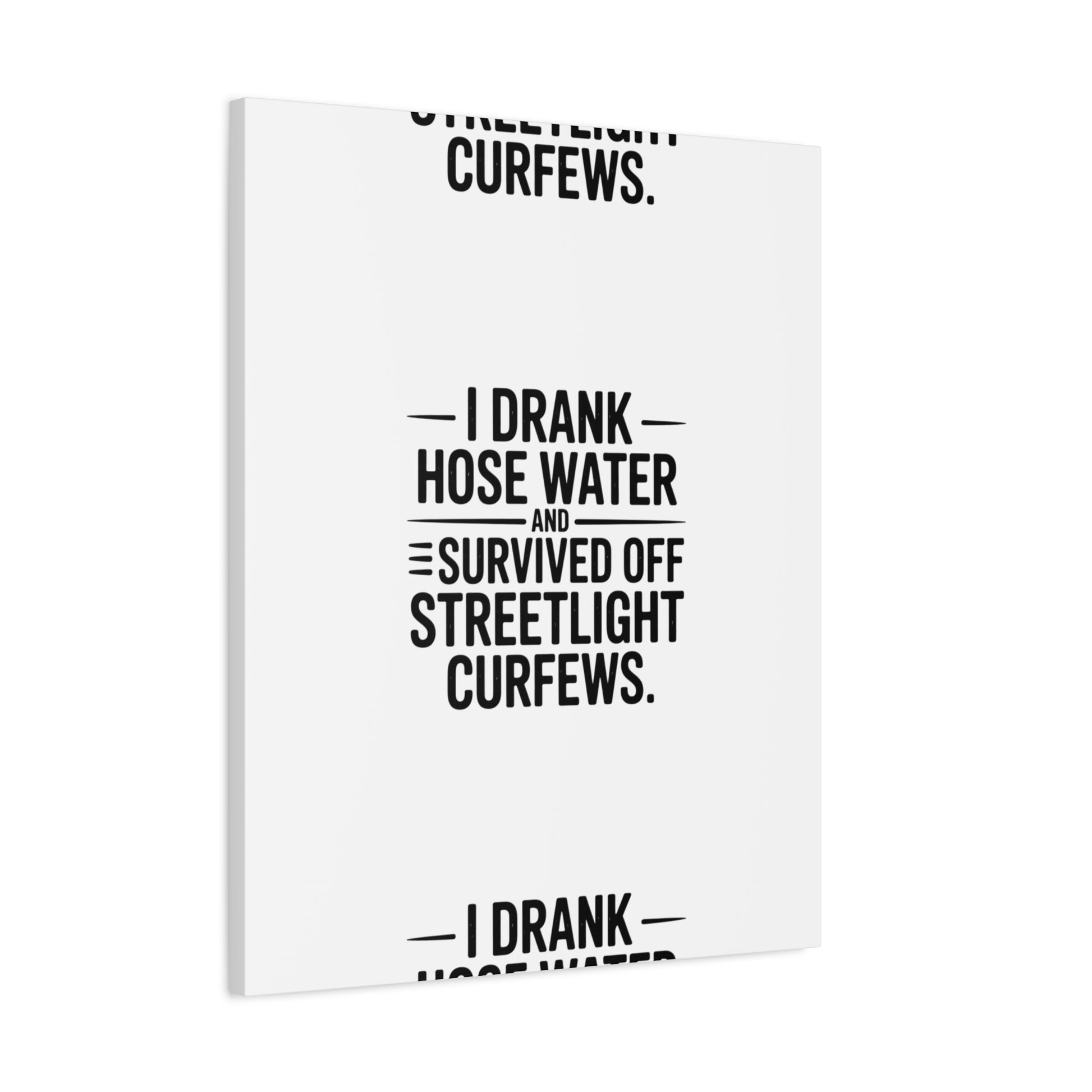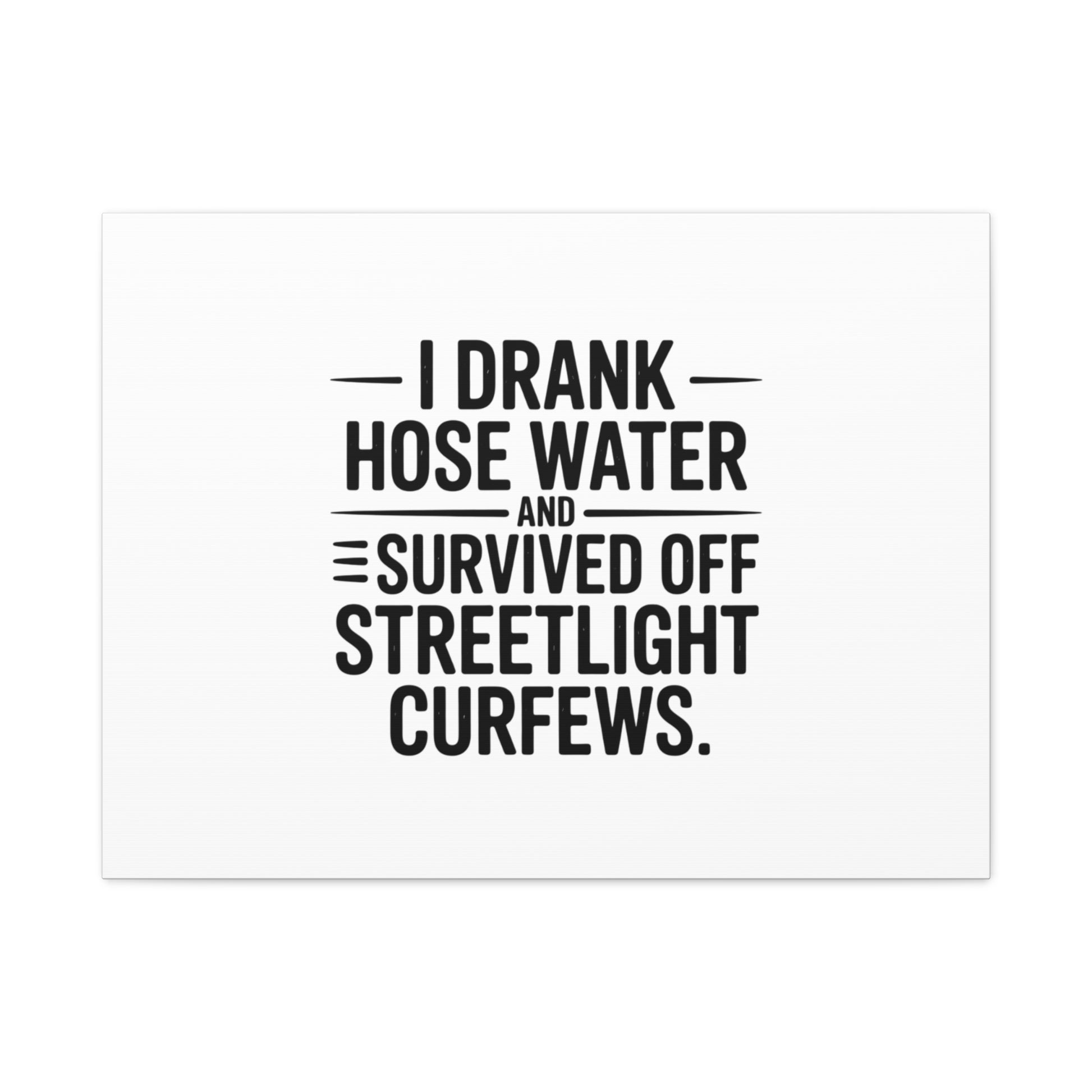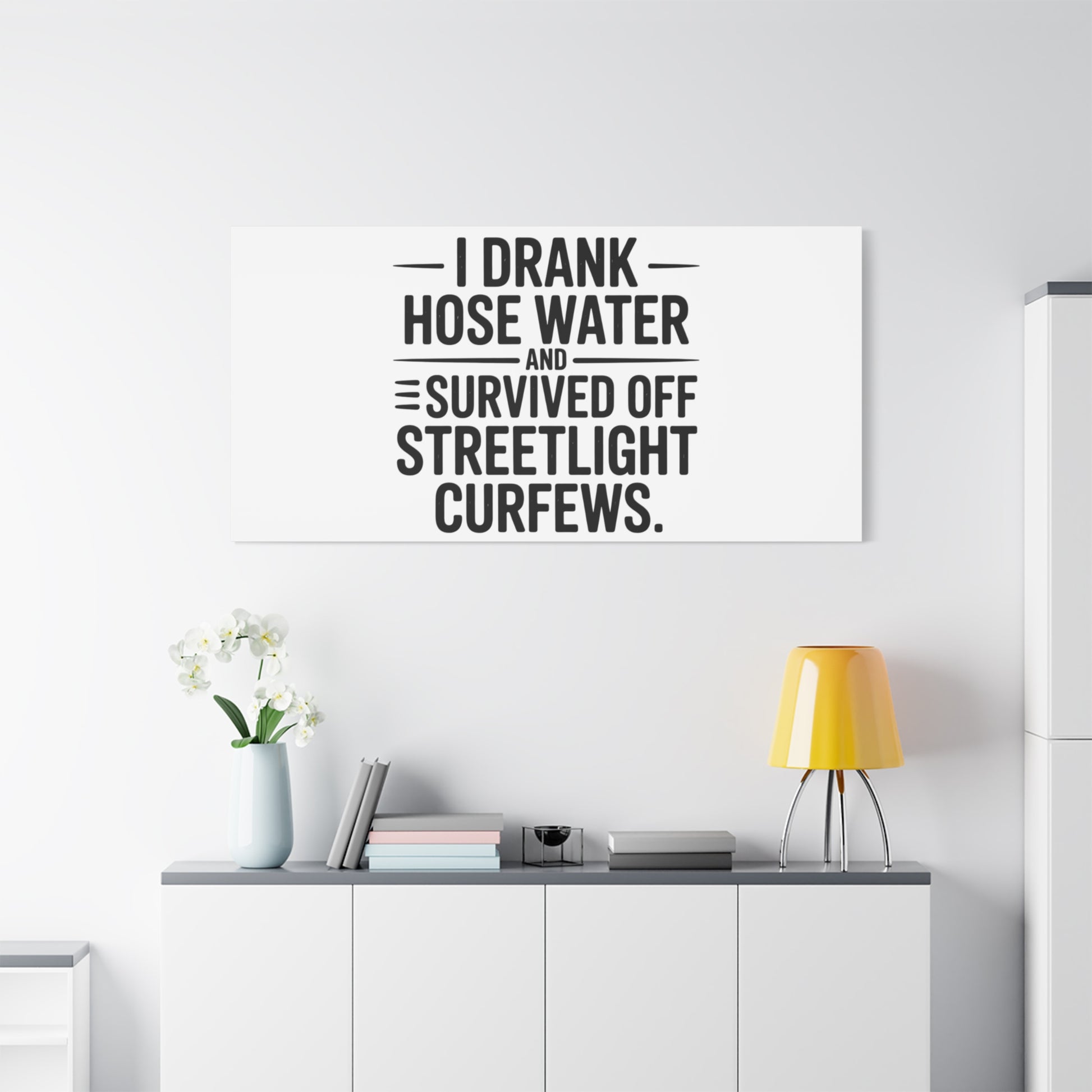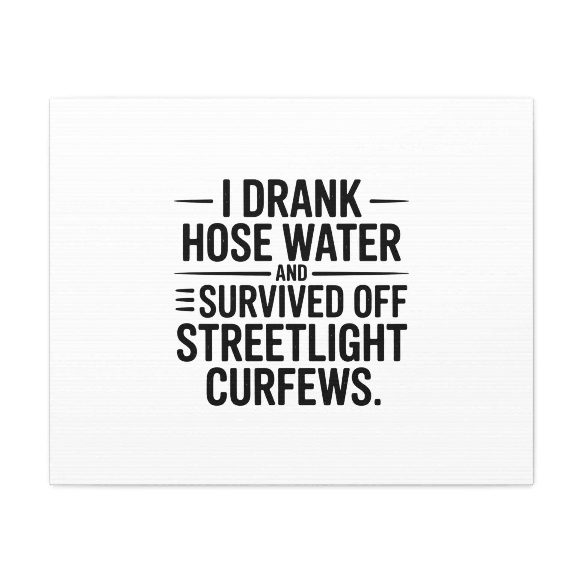 Matte Canvas Print – “I Drank Hose Water and Survived Off Streetlight Curfews” Retro Quote Wall Art