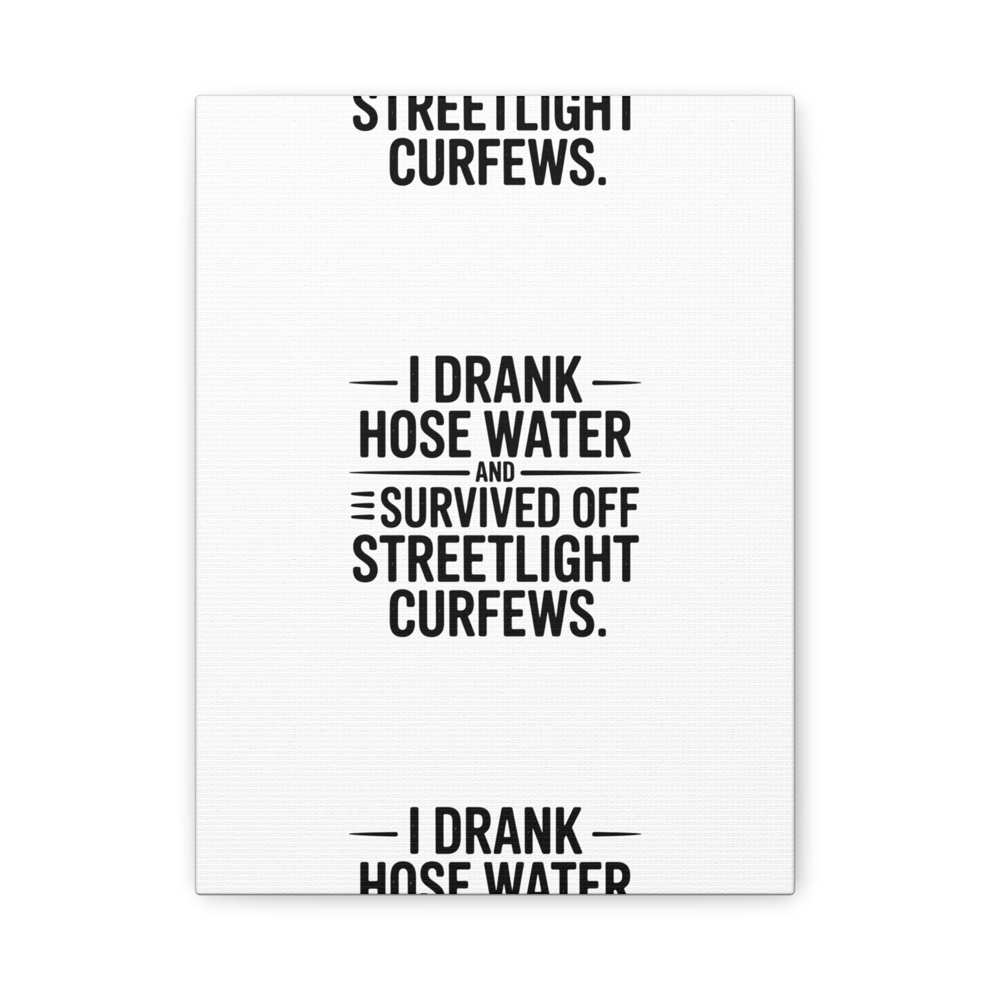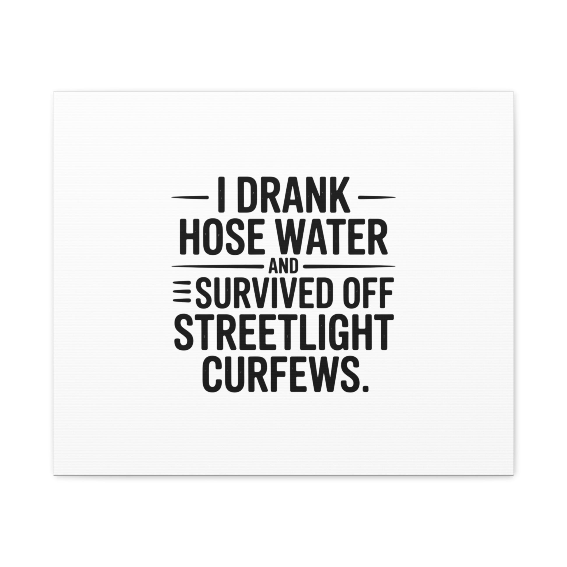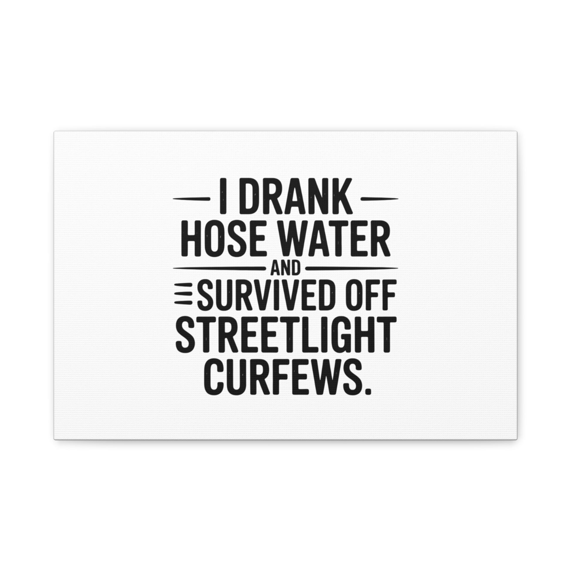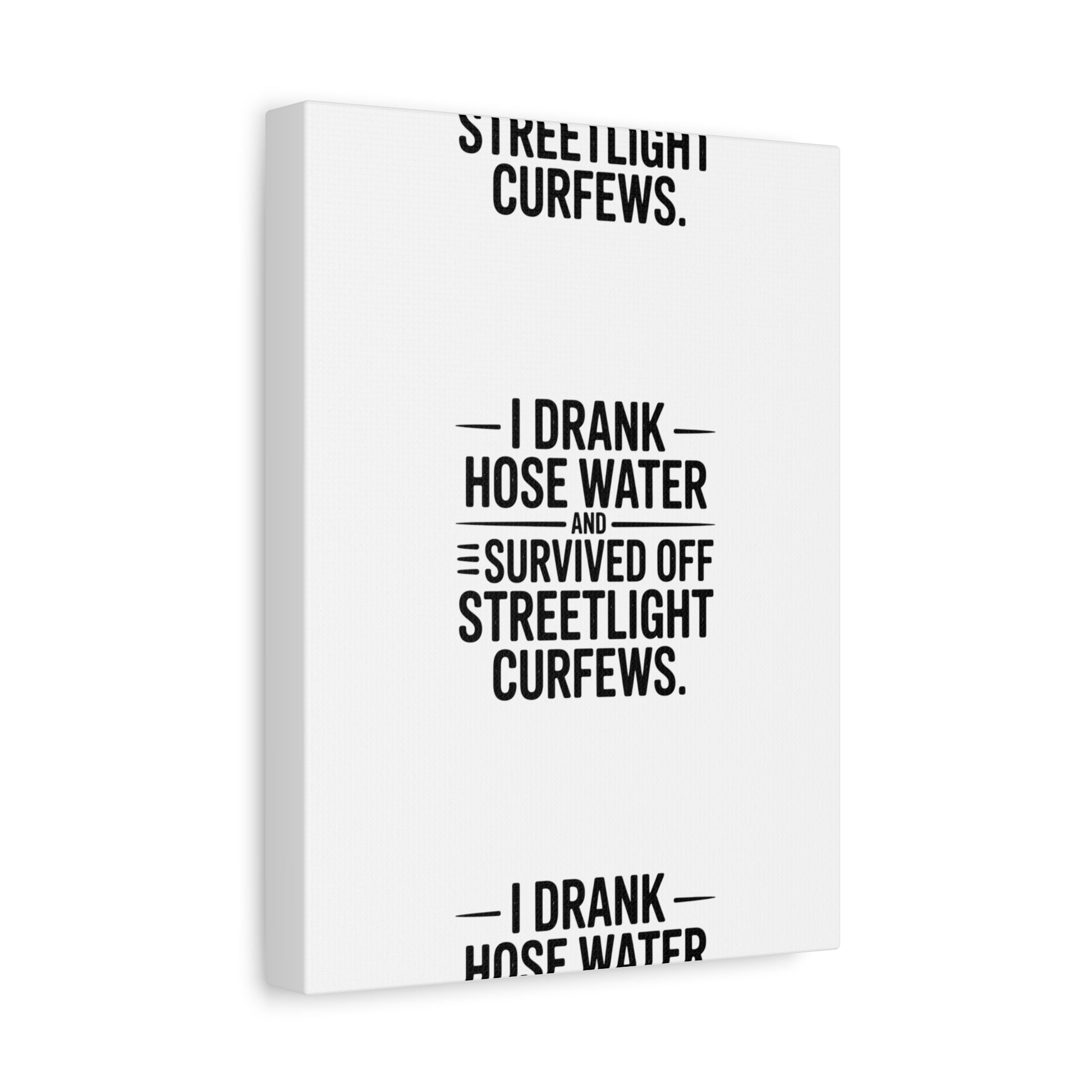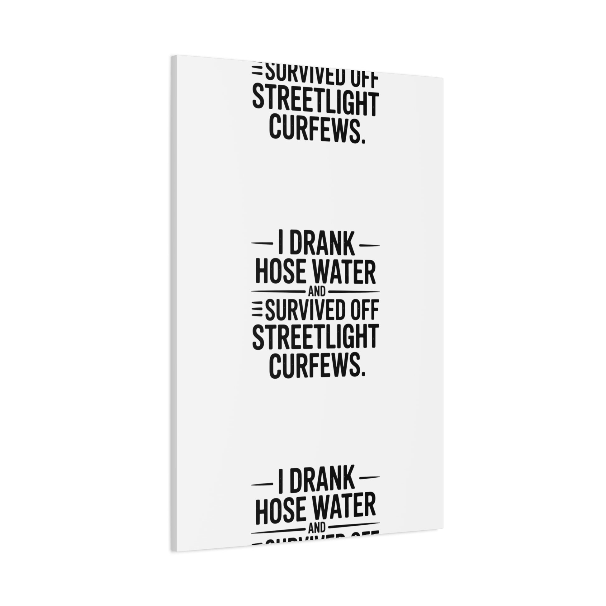 Matte Canvas Print – “I Drank Hose Water and Survived Off Streetlight Curfews” Retro Quote Wall Art