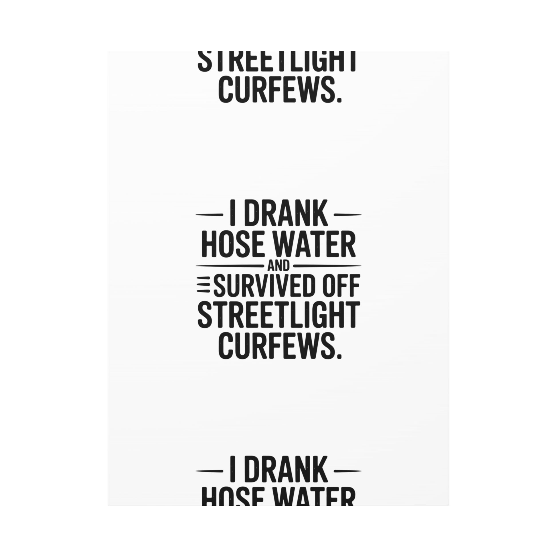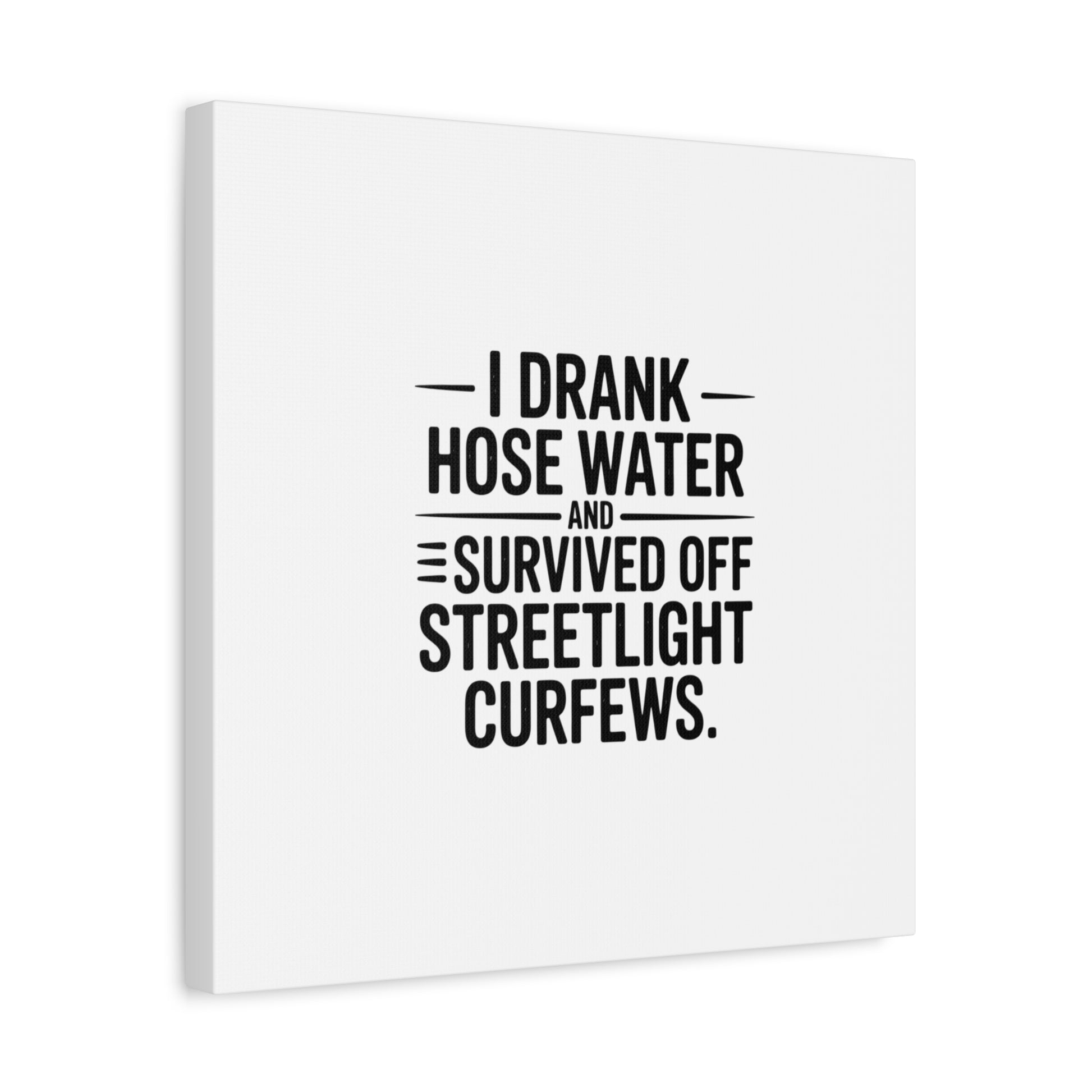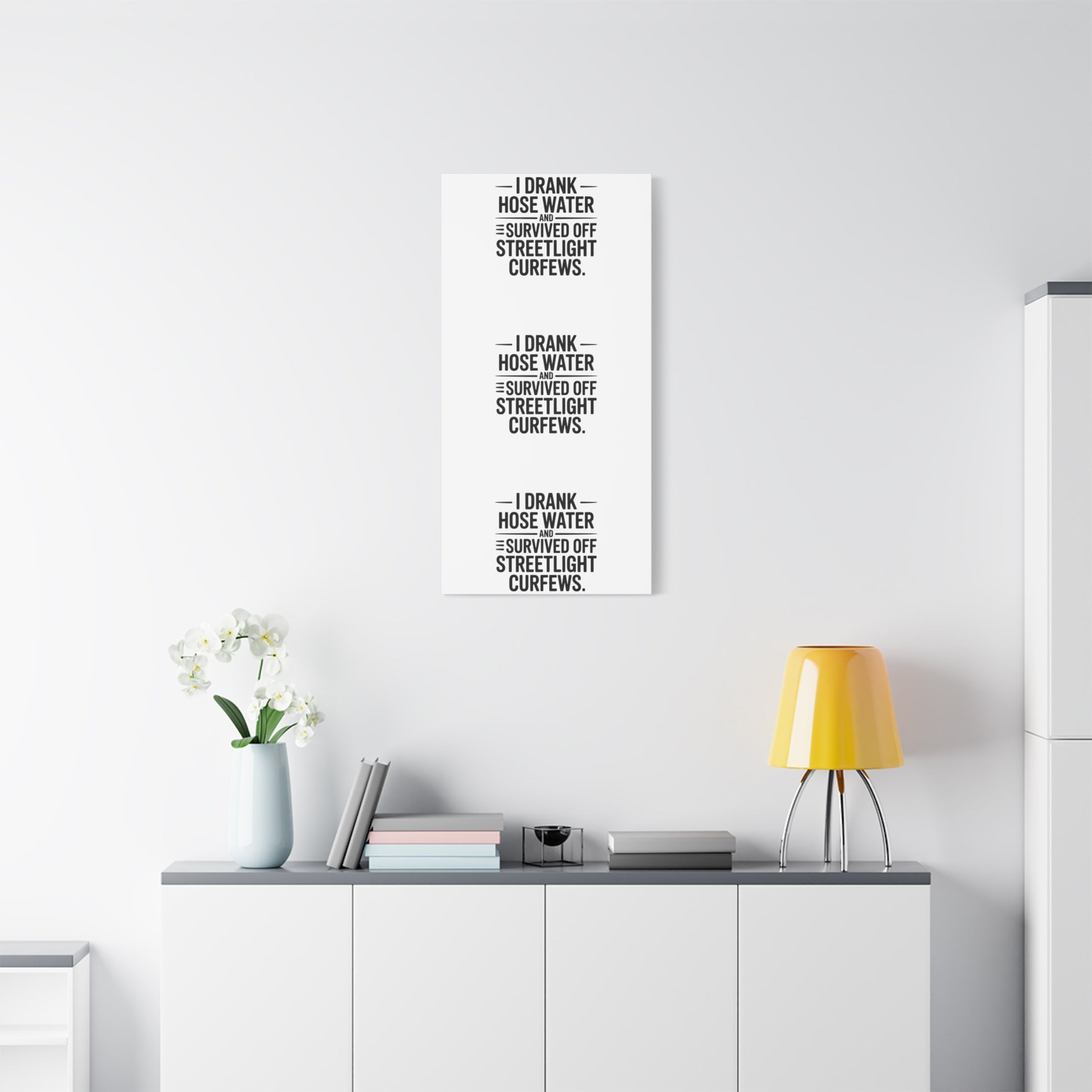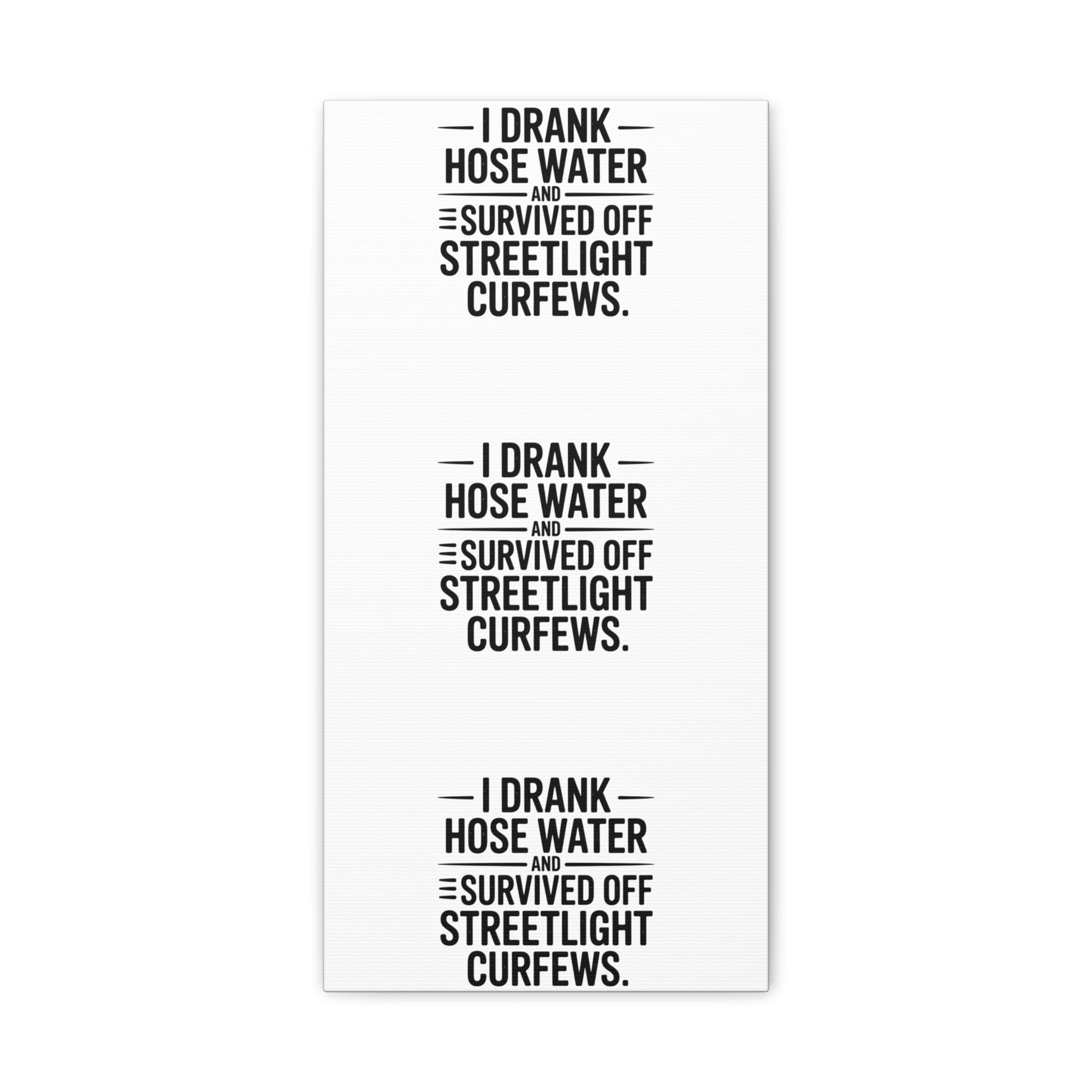 Matte Canvas Print – “I Drank Hose Water and Survived Off Streetlight Curfews” Retro Quote Wall Art