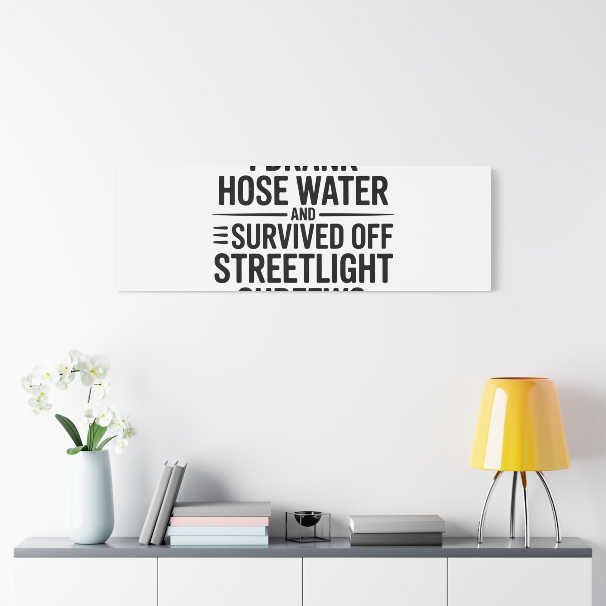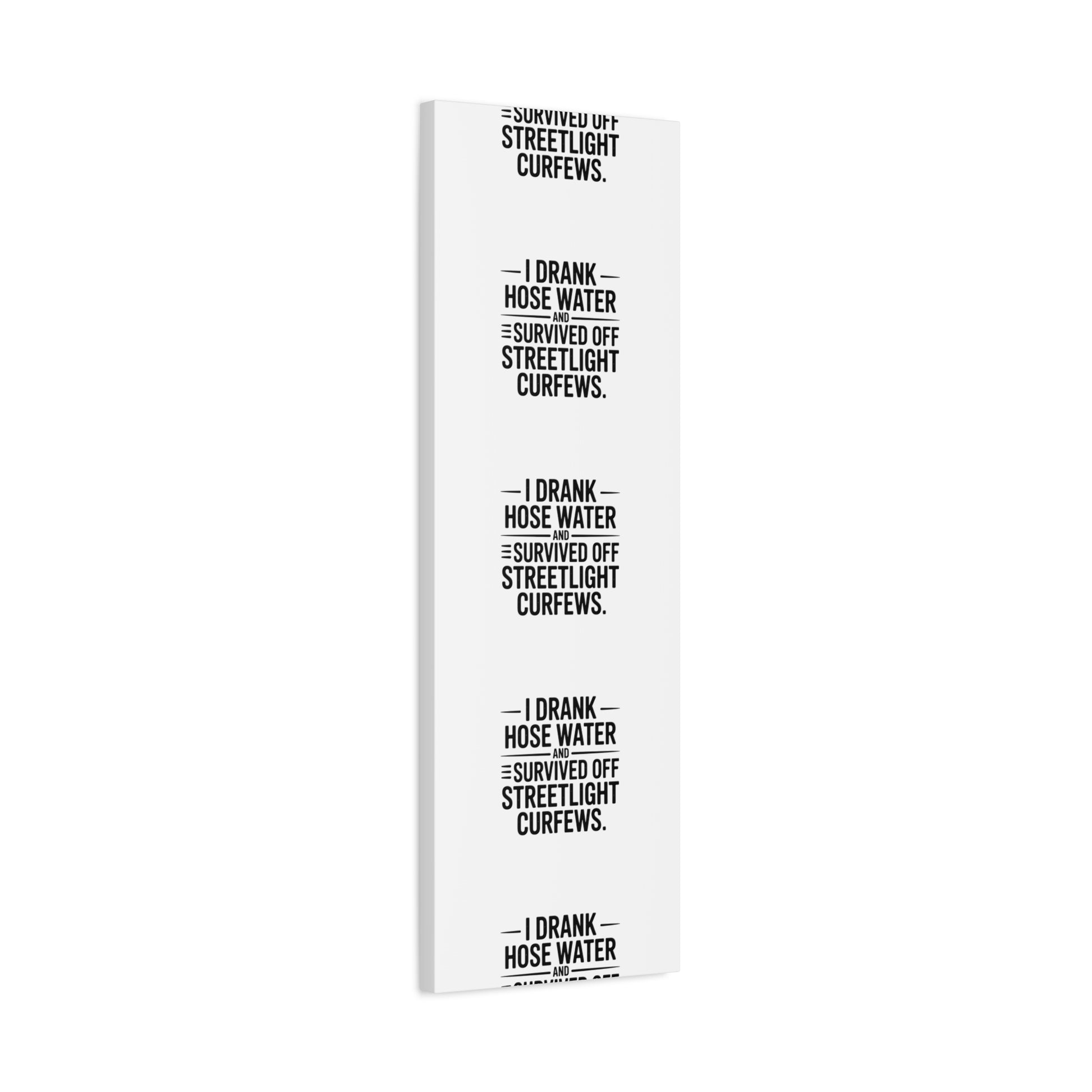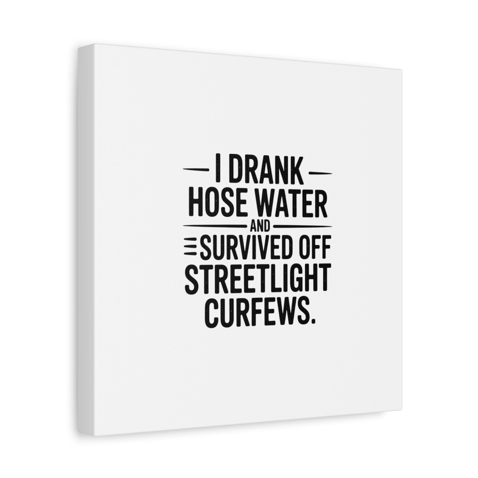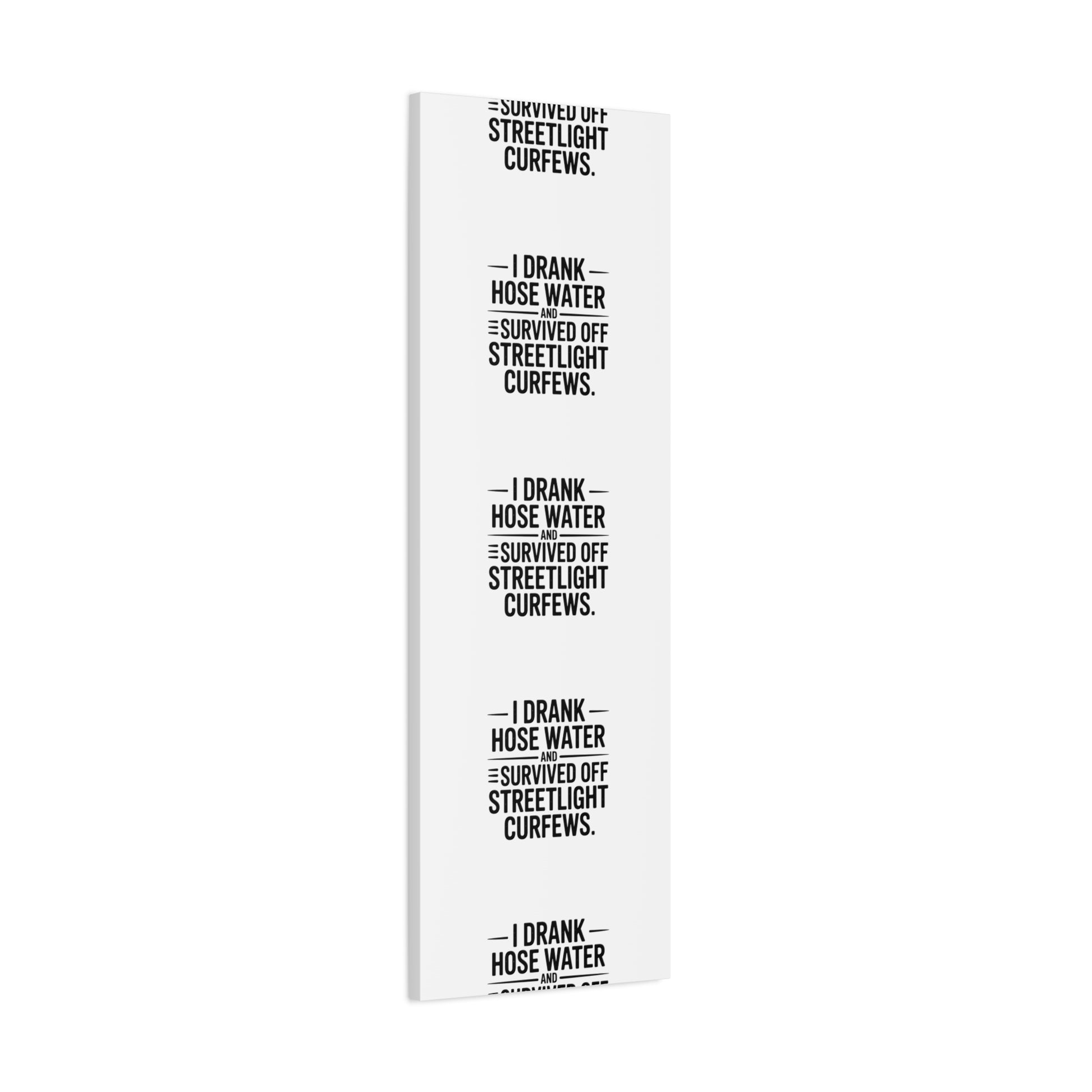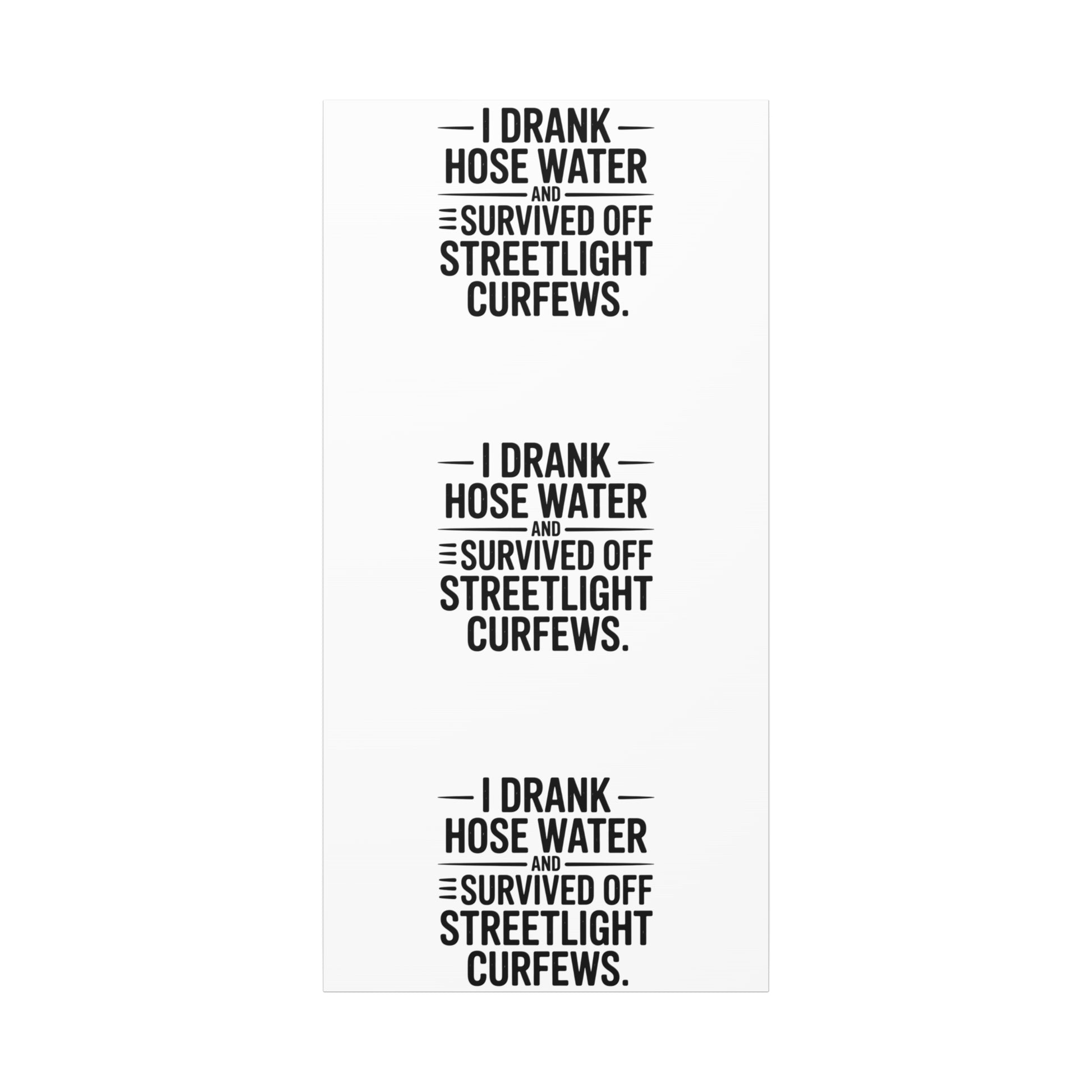 Matte Canvas Print – “I Drank Hose Water and Survived Off Streetlight Curfews” Retro Quote Wall Art
