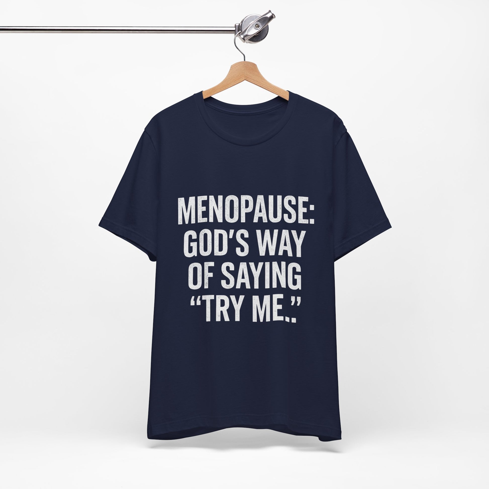 Looking for a unique gift for someone who already has everything? Menopause Tee — “Menopause: God’s Way of Saying ‘Try Me’” Short Sleeve Shirt is a go-to pick for friends, family, teammates, or coworkers who live in organized chaos and still want to look put together.