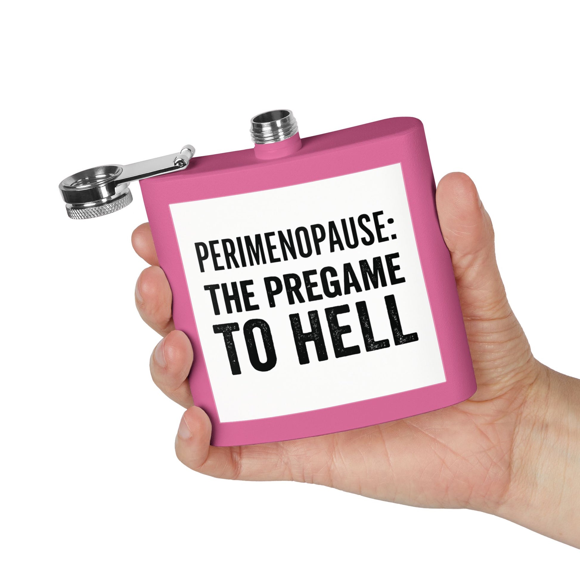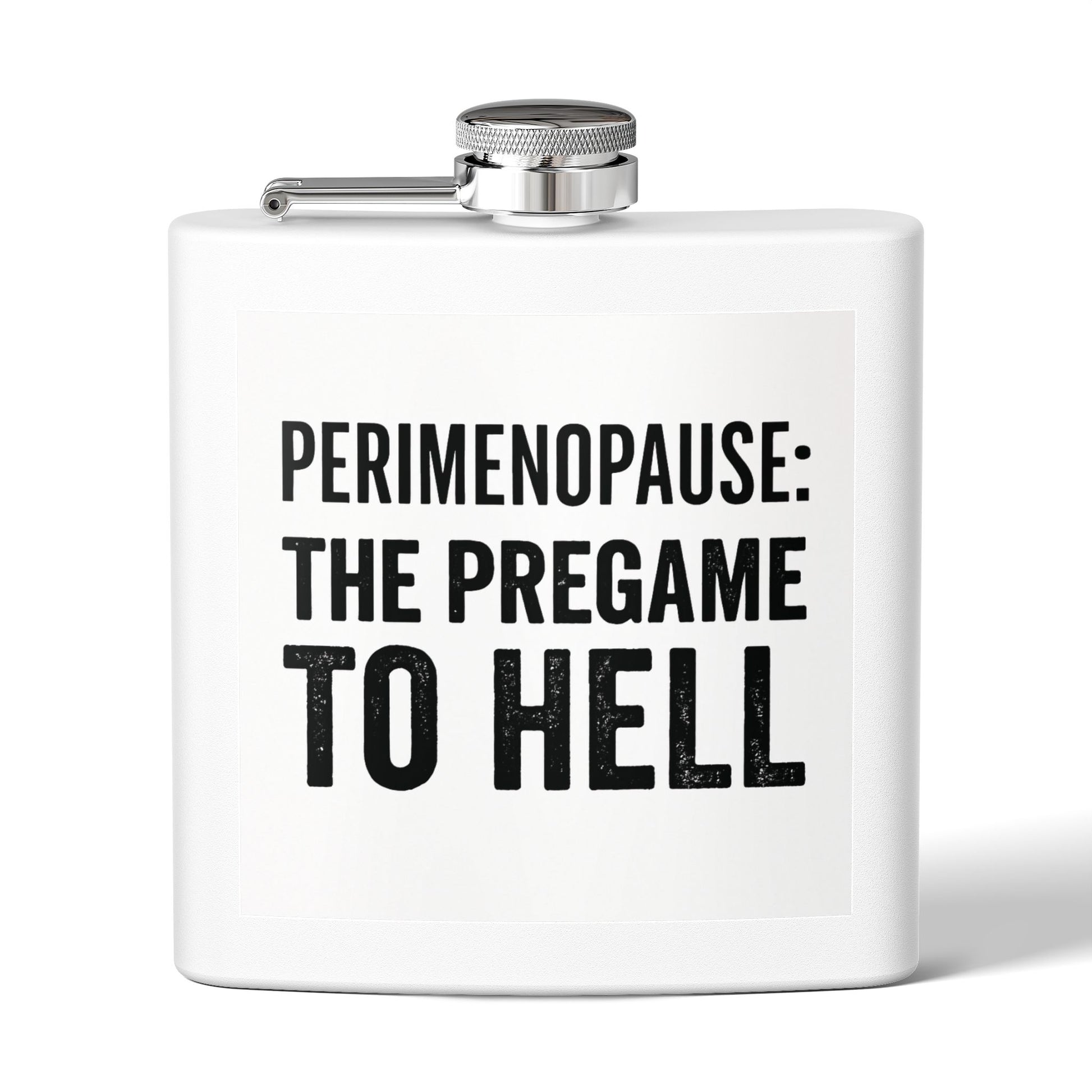The “Perimenopause: The Pregame to Hell” flask is your brutally honest, darkly funny companion to the hormonal chaos.